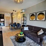 Luxury Apartment 4Seasons With Garage z sofą i biurkiem do pracy dysponuje patio i miejscem do siedzenia z klimatyzacją. Obiekt jest wyposażony w telewizję satelitarną, a także w sejf i czujnik dymu. Do dyspozycji odpoczywających jest 1 sypialnia. Obiekt noclegowy posiada również 1 łazienka z kabiną prysznicową walk-in i oddzielną toaletą. Dostępne są również suszarka do włosów, ręczniki i kapcie.